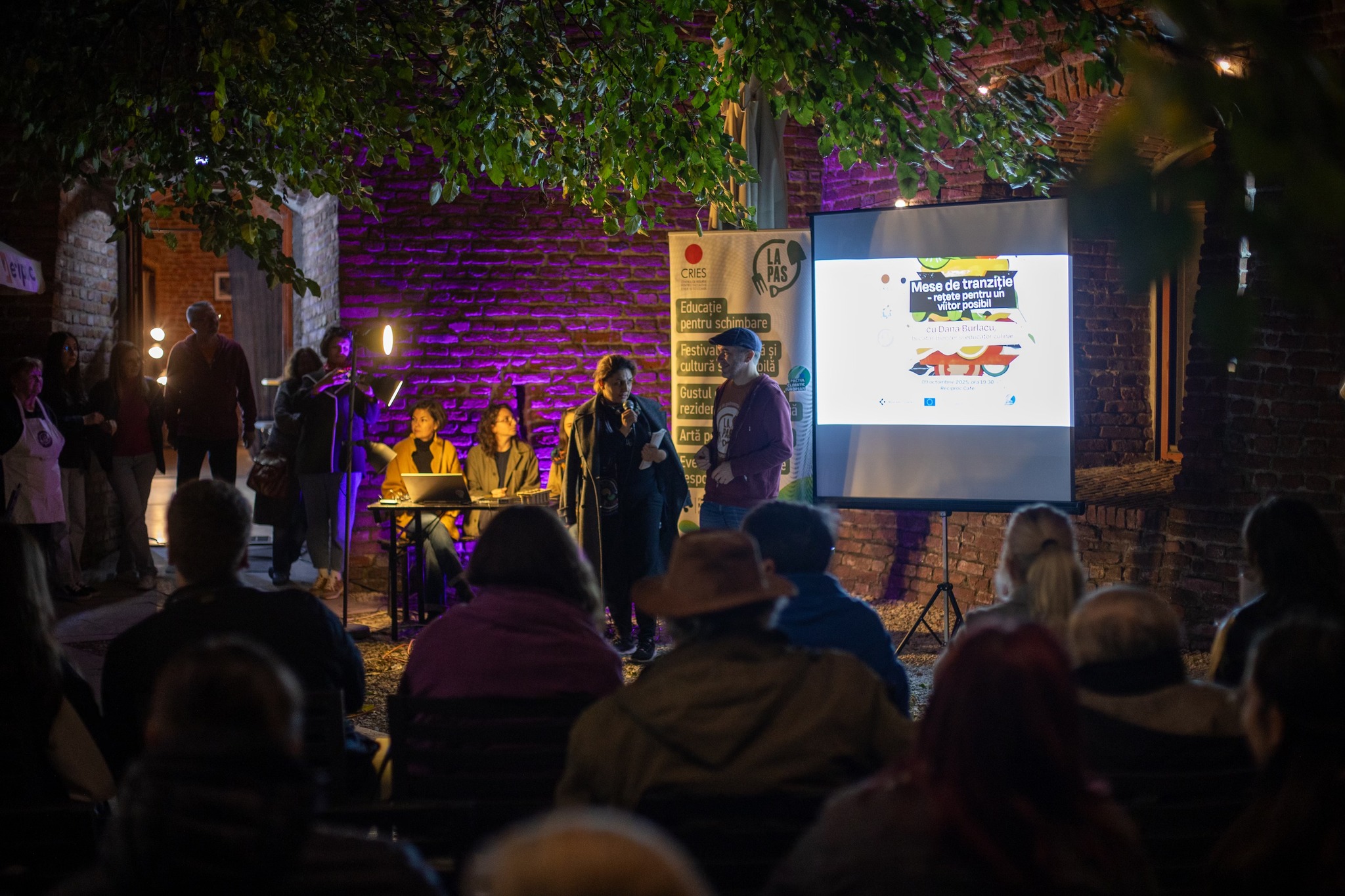 La ora 19:30, Bastionul Timișoarei s-a umplut de participanți veniți la evenimentul „Mese în tranziție – rețete pentru un viitor posibil”. Aproximativ 50 de oameni s-au adunat pentru o masă comunitară care a transformat discuțiile teoretice din timpul zilei în experiențe concrete, gustative.